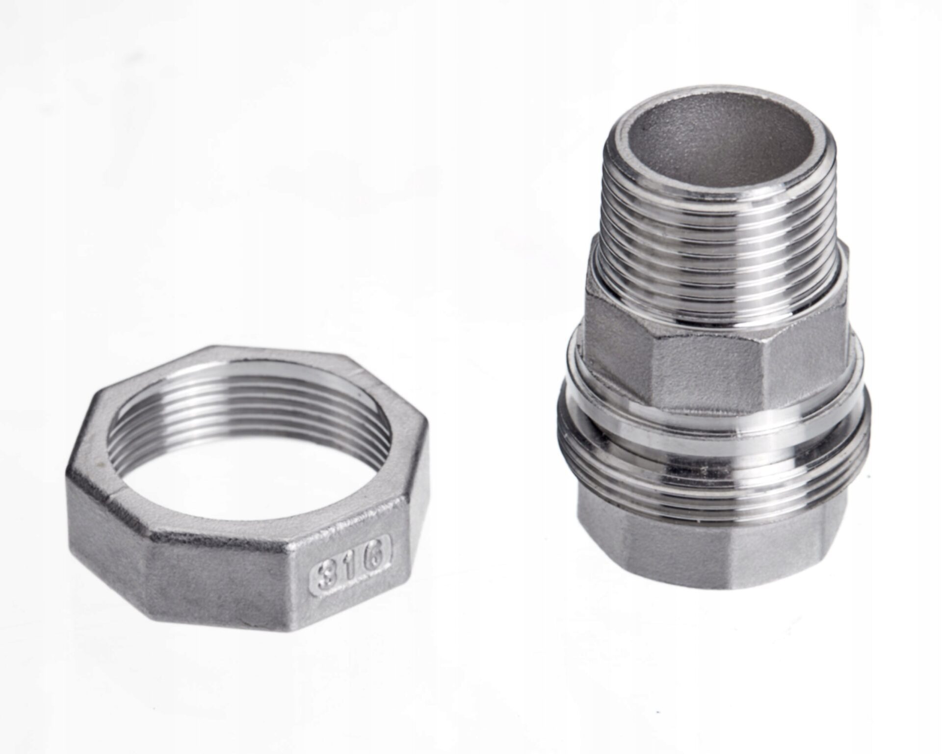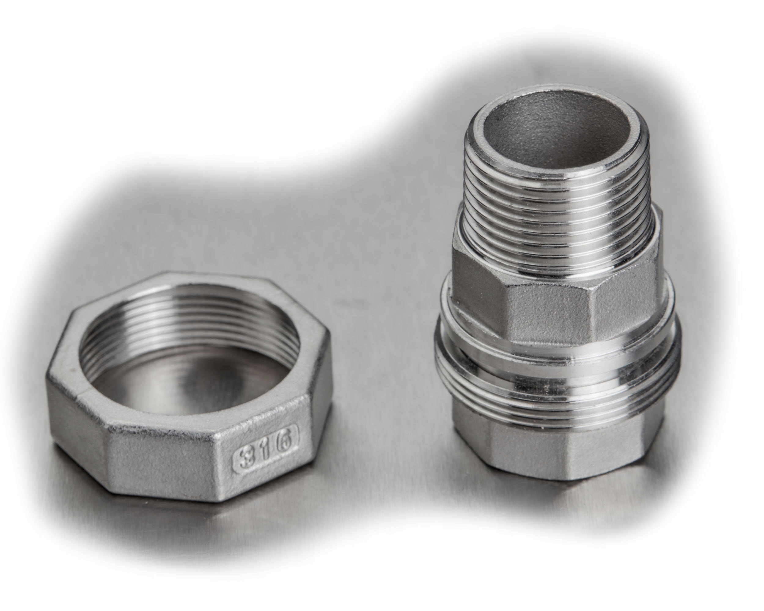 Złącze stożkowe składa się z 3 części: dwóch końcówek oraz nakrętki.
