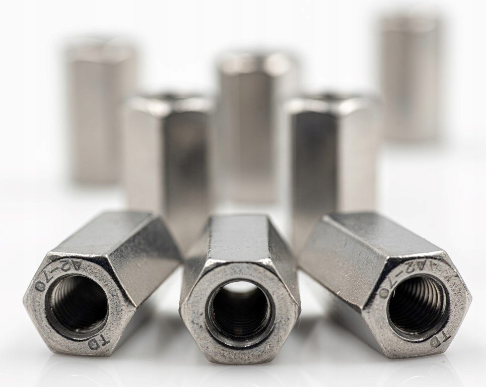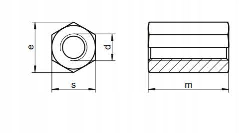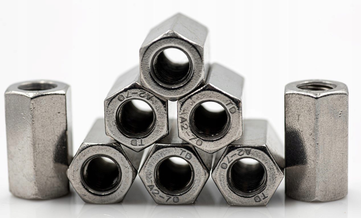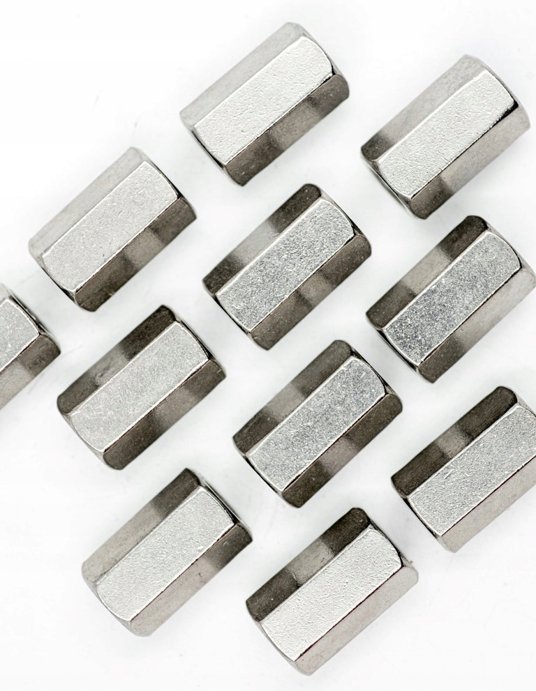 Nakrętka złączna o przekroju sześciobocznym jest elementem przedłużającym złączenie. Takim złączeniem może być styk dwóch gwintów śrubowych, prętów gwintowanych lub rur.