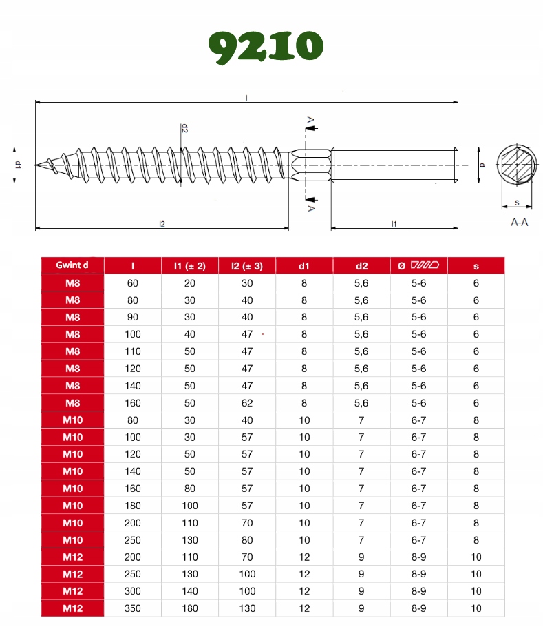Średnica dwugwintu: 6 mm