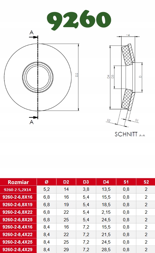 PODKŁADKA NIERDZEWNA 8,4×22 z USZCZELKĄ GUMOWĄ EPDM 9260 (10)